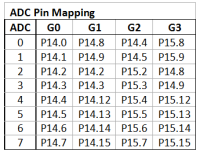 Es lässt sich daraus schließen, dass wir beim Zusammensetzen des gewünschten analogen Bausteins die Auflösung und den Kanal zuweisen müssen. Aus der Belegungsmatrix ergibt sich, von welchem Pin wir die Alternativfunktion Analog-In nutzen.