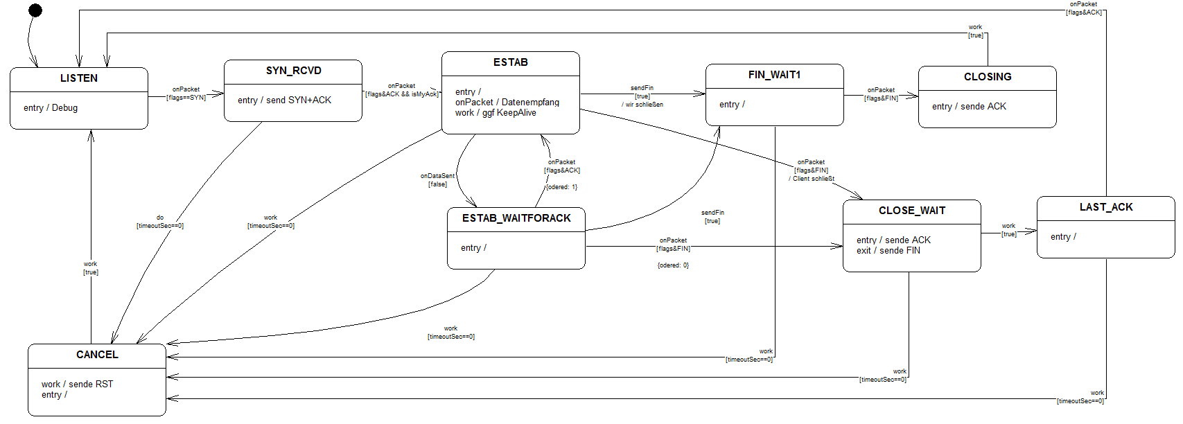 Für Interessenten findet sich in dem Paket Ethernet_TCP_Server auch das komplette Modell der Zustandsmaschine für den Verbindungsaufbau und Abbau des TCP-Protokolls