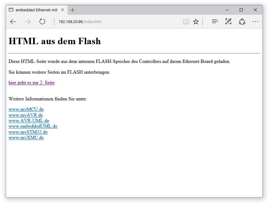 Testen Sie die Anwendung indem Sie über einen Browser die IP ihres embedded Webserver aufrufen.