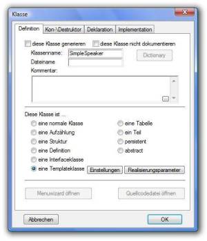 Schalten Sie jetzt die Klasse SimpleSpeaker im Dialog „Definieren“ auf „Template“ um.