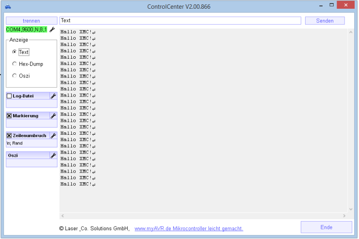 Die Aufgabe soll darin bestehen, die Zeichenkette „Hallo XMC!“ per UART an den PC zu senden. Dort werden die empfangenen Daten in einem Terminal-Programm angezeigt.