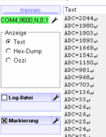 Für genauere Messungen ist es nötig die Auflösung des ADC zu erhöhen. Der XMC kann Analogwerte mit einer Auflösung von bis zu 12 Bit digitalisieren. Die 12 Bit lassen sich jetzt leider nicht mehr ganz so einfach an das ControlCenter schicken, um diese zu visualisieren. Die UART ist leider byteorientiert. Sollen Daten aus mehreren Bytes zusammengesetzt werden, muss das empfangende Programm genau wissen, wie die Informationen zusammengesetzt werden sollen. Das leisten einfache Terminalprogramme nicht. Eine verhältnismäßig einfache Variante unsere 12-Bit Daten trotzdem zu übertragen ist, diese in Text umzuwandeln. Dann lassen sich die Werte in der Textansicht verfolgen. Ergänzen bzw ändern Sie bitte in der Klasse Controller das Attribut buffer vom Typ String und die ADC-Genauigkeit auf 12 Bit.
