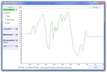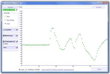Übersetzen Sie das Programm. Korrigieren Sie ggf. Schreibfehler. Übertragen Sie das lauffähige Programm in den Programmspeicher des Controllers. Starten Sie das ControlCenter und beachten die korrekten Einstellungen für den COM-Port. Nachdem Sie „verbinden“ aktiviert haben, stellen Sie die Ansicht auf „Text“.