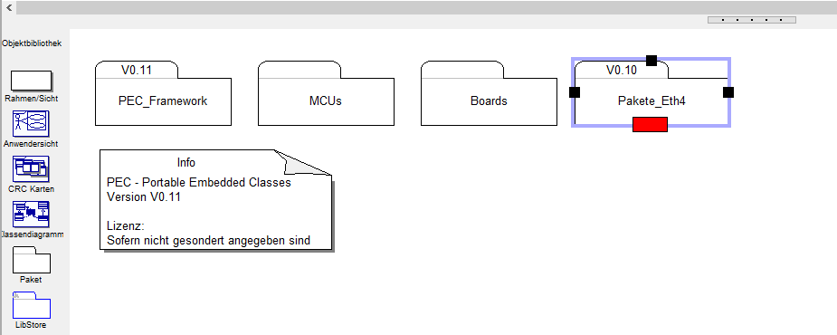 Für die die Low Level Treiber sollten Sie jetzt kein allgemeines Paket sondern ein spezielles Boardpaket nutzen. Sie finden die Boardpakete im geladenen Ethernetpaket oder über die Suchfunktion im Explorer beziehungsweise im SiSy LibStore zum Download. Referenzieren Sie bitte im neuen Klassendiagramm das Paket „MCU_Board_myXMC4500_RelaxKit_Eth“