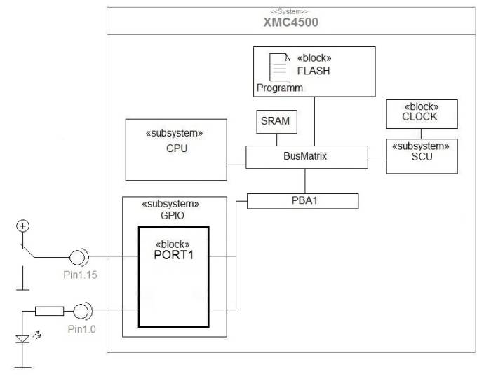 Mit der zweiten Übung tasten wir uns, im wahrsten Sinne des Wortes, an die eigentliche Aufgabe eines jeden Controllers heran. Dieser soll Zeit seines Lebens fortlaufend Eingaben aus seiner Umgebung nach einer vorgegebenen Logik verarbeiten und entsprechend dieser Verarbeitung Ausgaben erzeugen. Es ist das allseits beliebte EVA-Prinzip, *gähn*. Spaß beiseite! Zum Gähnen ist das nur so lange, wie man mit der EVA nichts Praktisches anfängt *grins*. Es soll ein Taster auf dem XMC4500 Relax Kit ausgewertet und bei Tastendruck eine LED eingeschaltet werden.