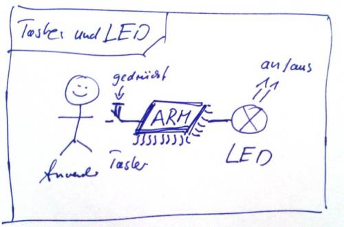 Um die Interrupt-Programmierung des XMC mit der UML kennenzulernen, nehmen wir uns eine bekannte Aufgabenstellung vor. Wir lassen eine LED über einen Digital-Port ein-, aus- bzw. umschalten.
