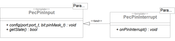 Das Tempate PecPinInterrupt scheint für die gestellte Aufgabe geeignet zu sein. Es bietet eine Operation mit dem Namen onPinInterrupt zum überschreiben an. An diese Schnittstelle wollen wir uns dran hängen.